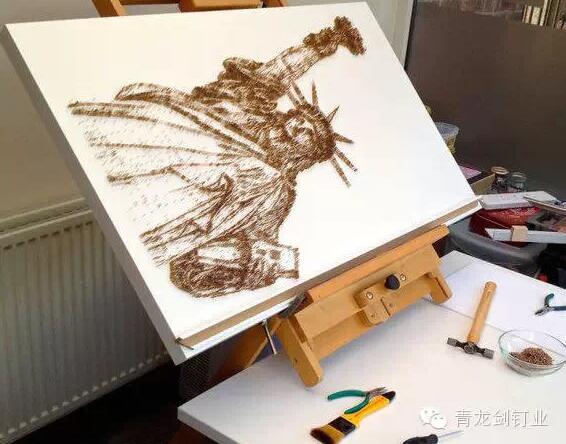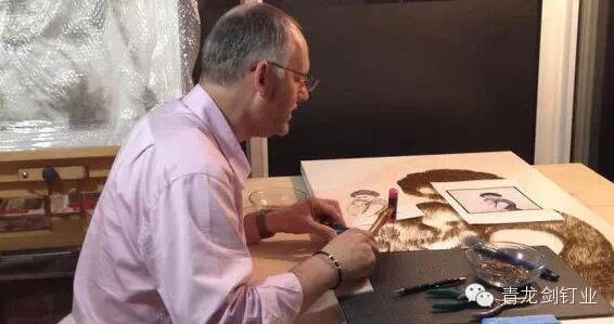 英國沃靈頓市的一名52歲的藝術家用錘子和釘子制作出了一幅幅美麗的名人肖像,其中包括瑪麗蓮·夢露、“披頭士”,甚至是英國女王。