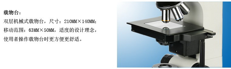 雙層機械移動式載物臺, 外形尺寸:210mmX140mm,移動范圍:63mmX50mm |